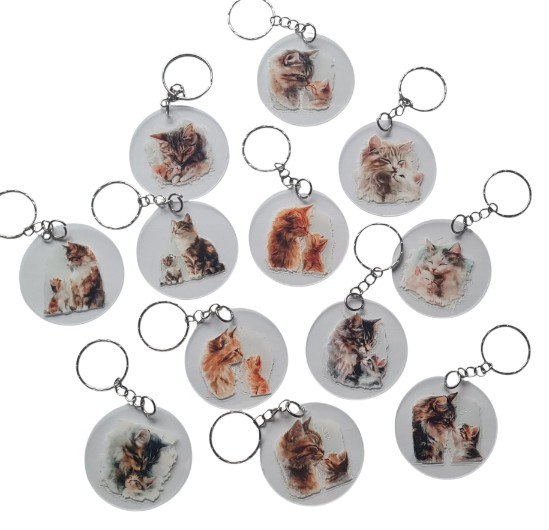 Breng een vleugje liefde, warmte en persoonlijkheid in je dagelijkse routine met de Sleutelhanger ouder met kind kat. Deze ronde sleutelhanger van 5 cm is gemaakt van hoogwaardig acryl en voorzien van een hartverwarmende, schattige afbeelding van een volwassen kat samen met haar kitten. Een ontwerp dat onmiddellijk een glimlach op je gezicht tovert en perfect past bij iedereen die dol is op katten, kittens en betekenisvolle dieraccessoires.